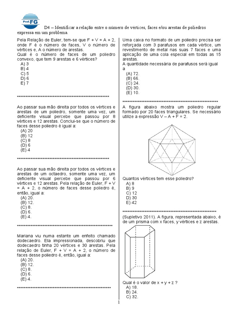 deficiente visual percebe que passou por 8 utilize a expressão V – A + F = 2.