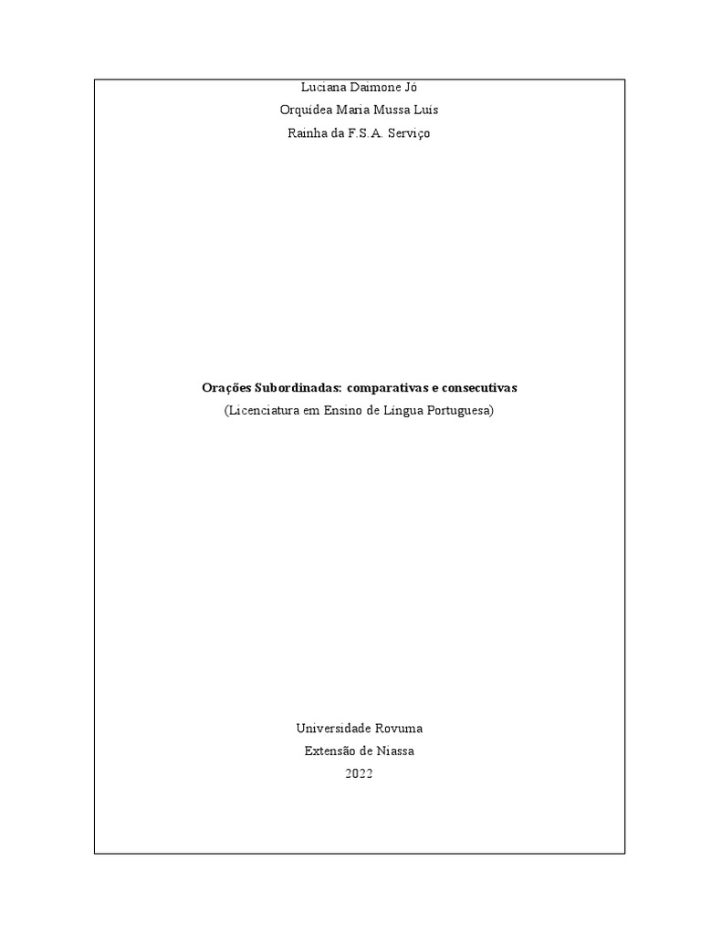 objectivo geral do trabalho, compreender a cerca das orações subordinadas. E como
