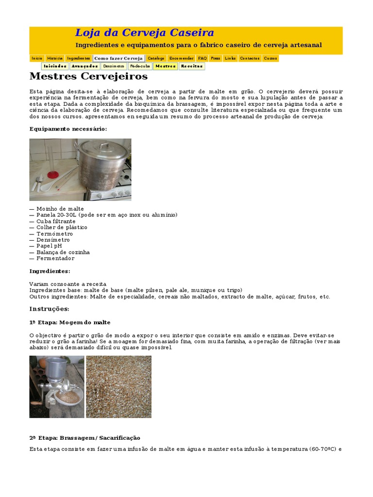 Esta página desita-se à elaboração de cerveja a partir de malte em grão. O cervejerio deverá possu ir