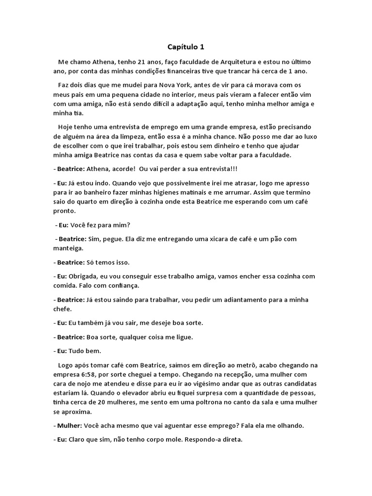 - Eu: obrigada. Respondo me dirigindo até a sala.