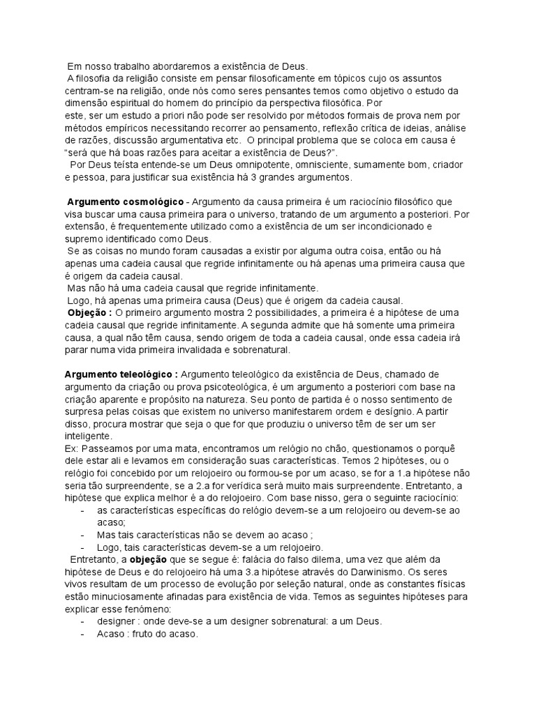 Em nosso trabalho abordaremos a existência de Deus.