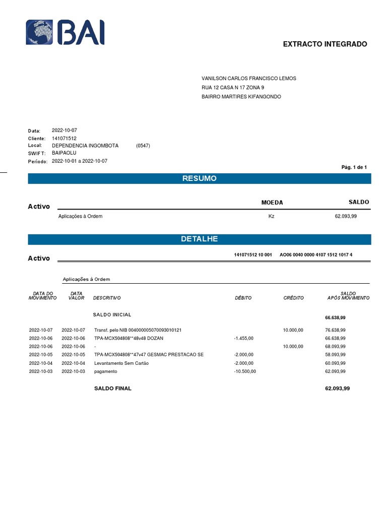 2022-10-07 2022-10-07 Transf. pelo NIB 004000005070093010121 10.000,00 76.638,99