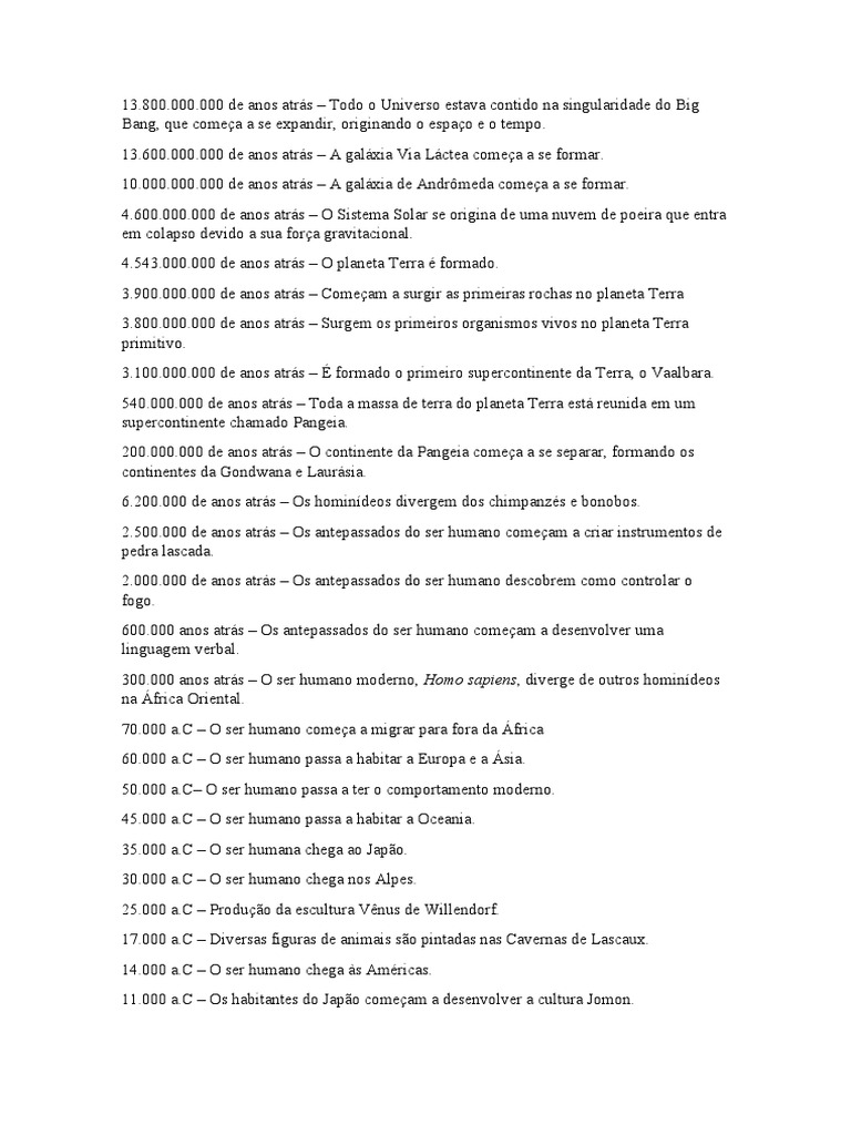 4.543.000.000 de anos atrás – O planeta Terra é formado.