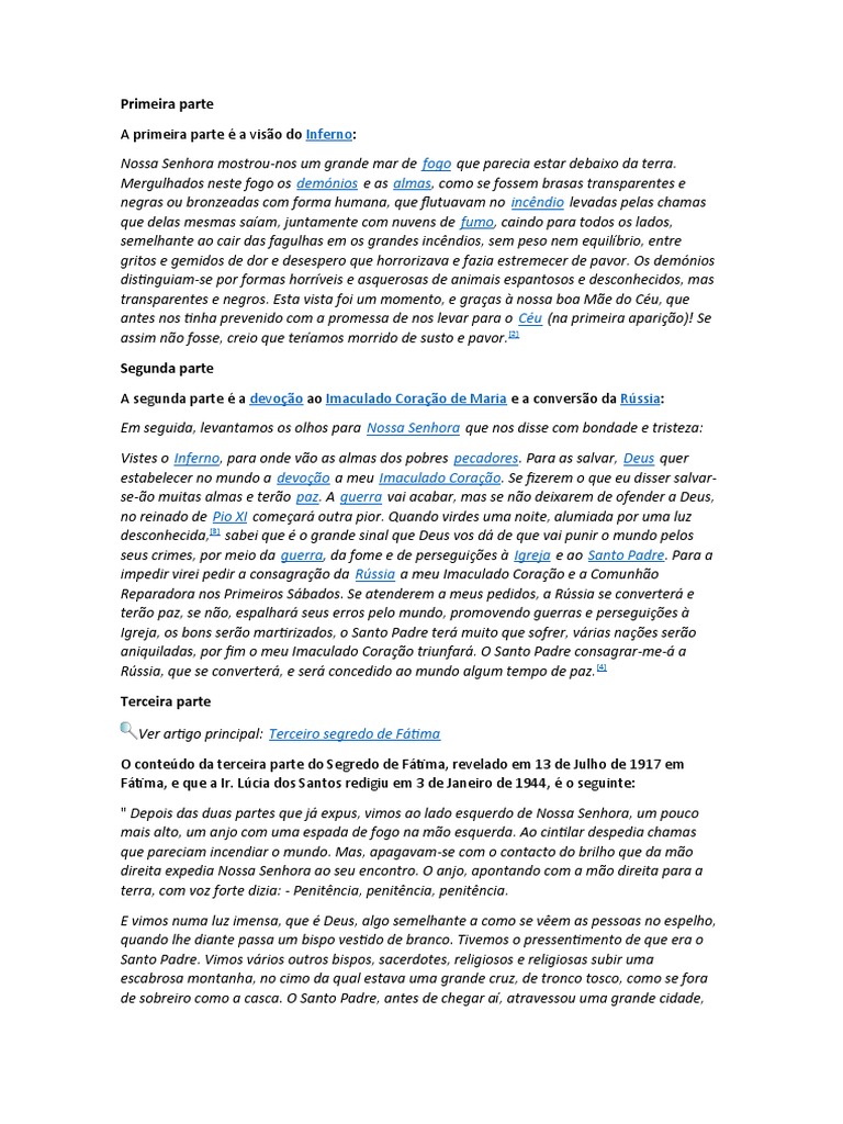 Fátima, e que a Ir. Lúcia dos Santos redigiu em 3 de Janeiro de 1944, é o seguinte: