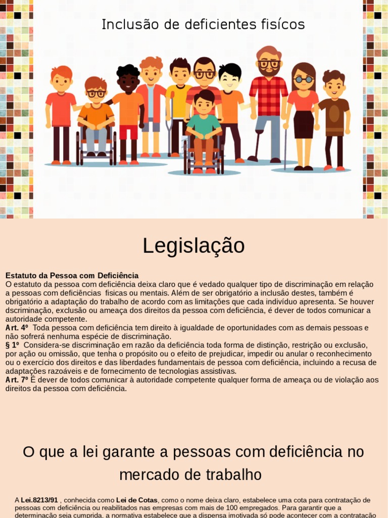 a pessoas com deficiẽncias fisicas ou mentais. Além de ser obrigatório a inclusão destes, também é