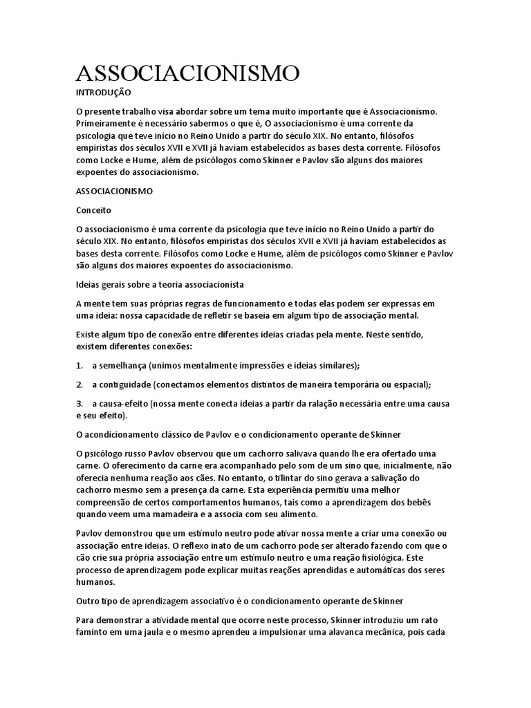 Primeiramente é necessário sabermos o que é, O associacionismo é uma corrente da