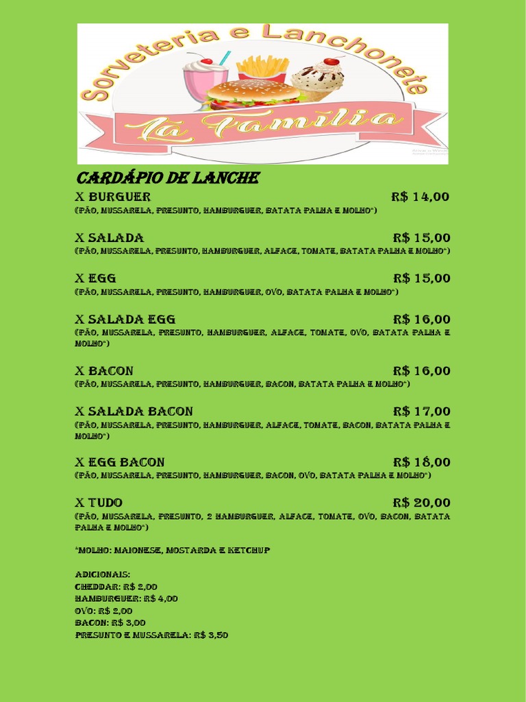 CARDÁPIO DE LANCHE