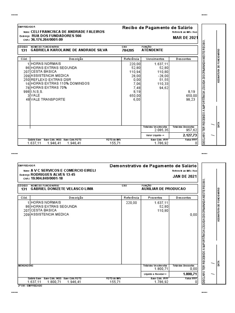 EMPREGADOR Demonstrativo de Pagamento de Salário