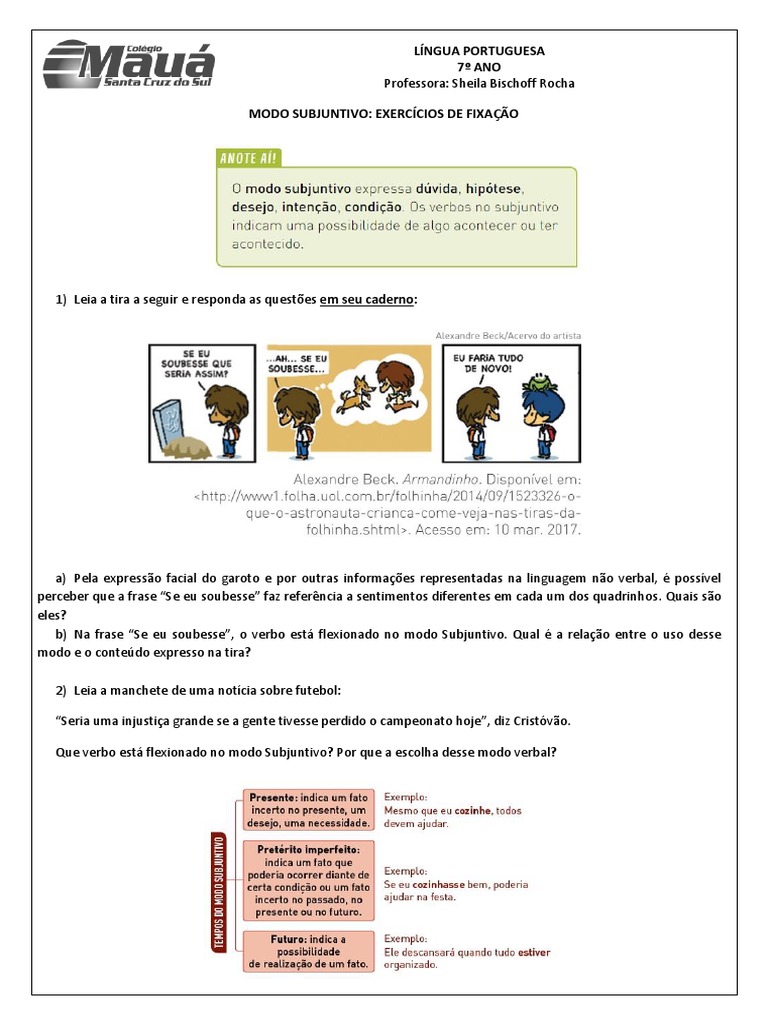 MODO SUBJUNTIVO: EXERCÍCIOS DE FIXAÇÃO