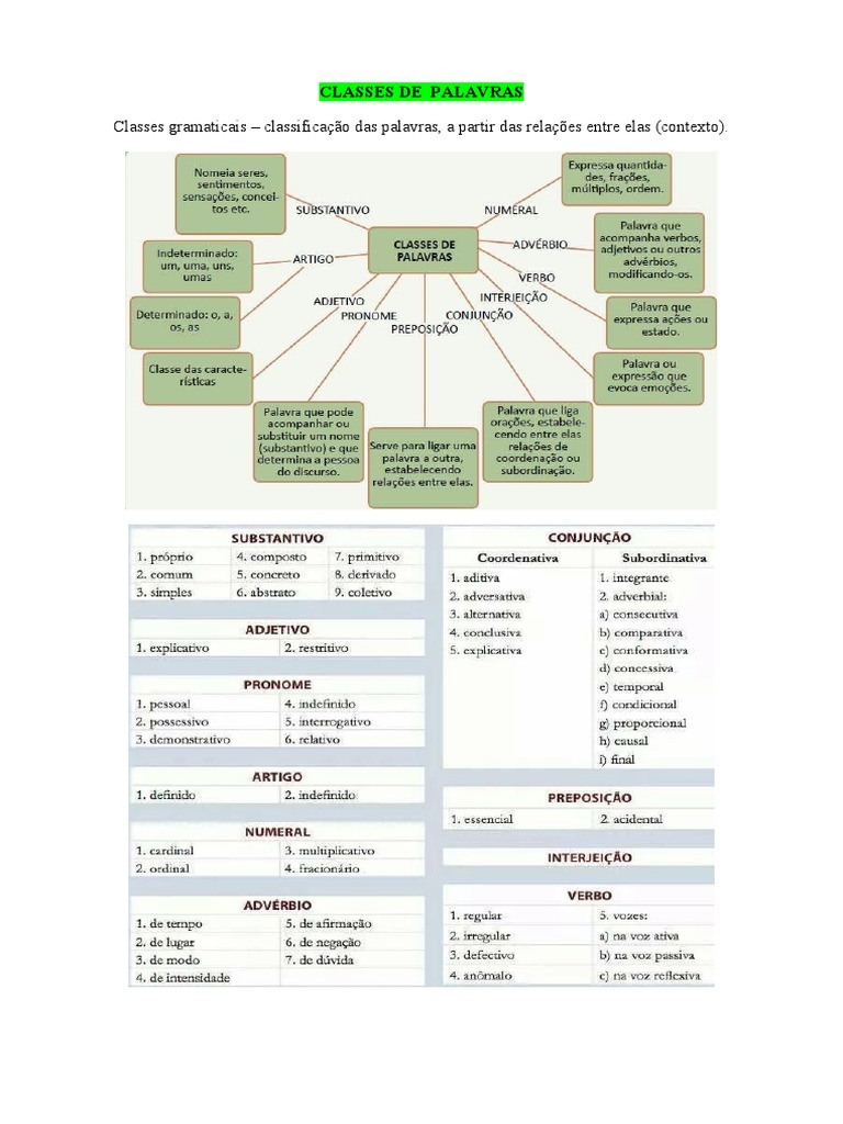 Classes gramaticais – classificação das palavras, a partir das relações entre elas (contexto).