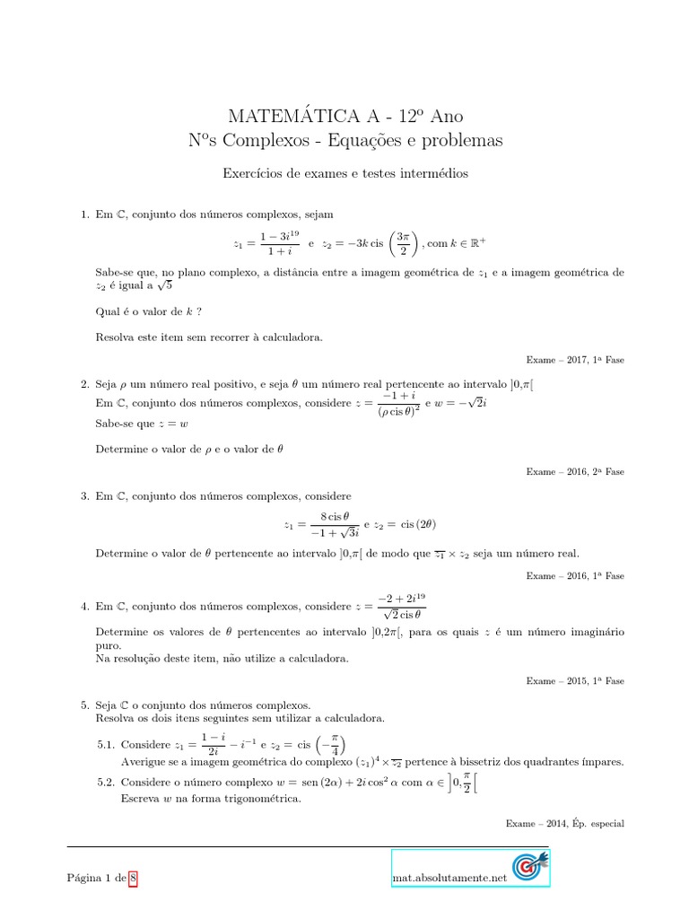 5.1. Considere z1 = − i−1 e z2 = cis −