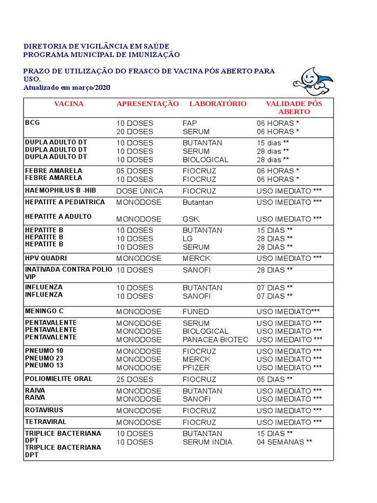 PRAZO DE UTILIZAÇÃO DO FRASCO DE VACINA PÓS ABERTO PARA