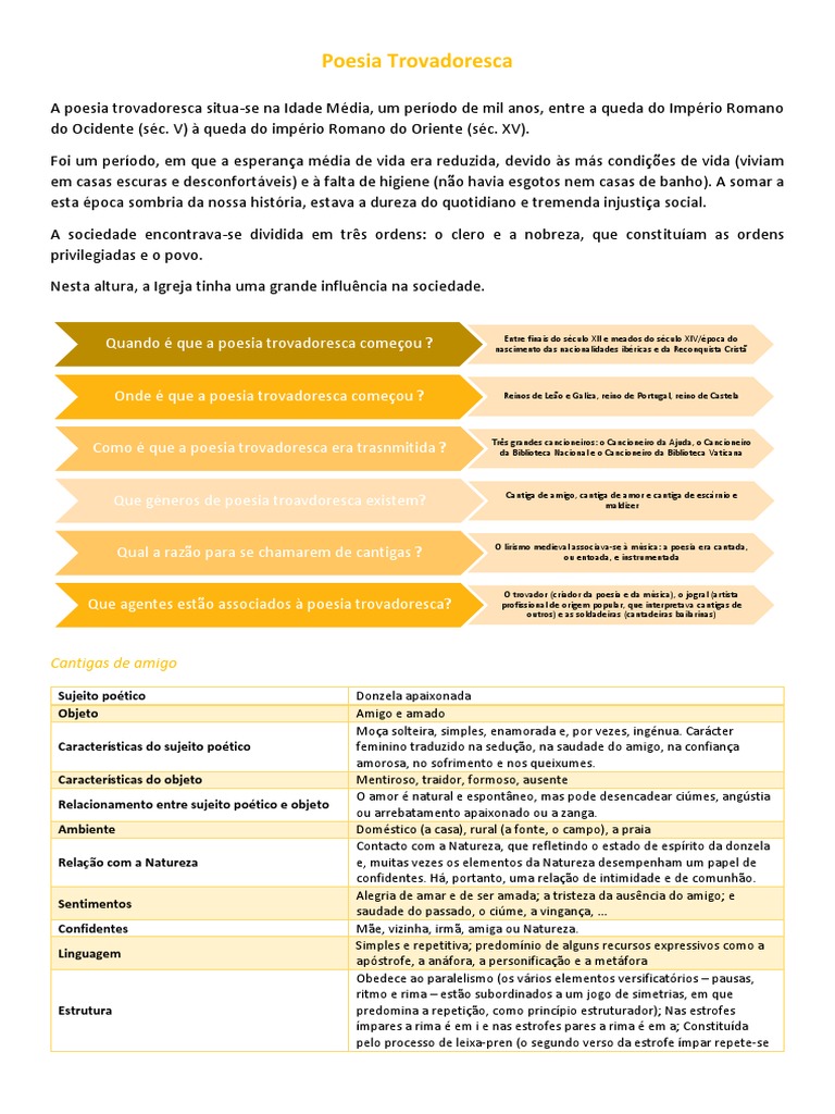 A poesia trovadoresca situa-se na Idade Média, um período de mil anos, entre a queda do Império Romano