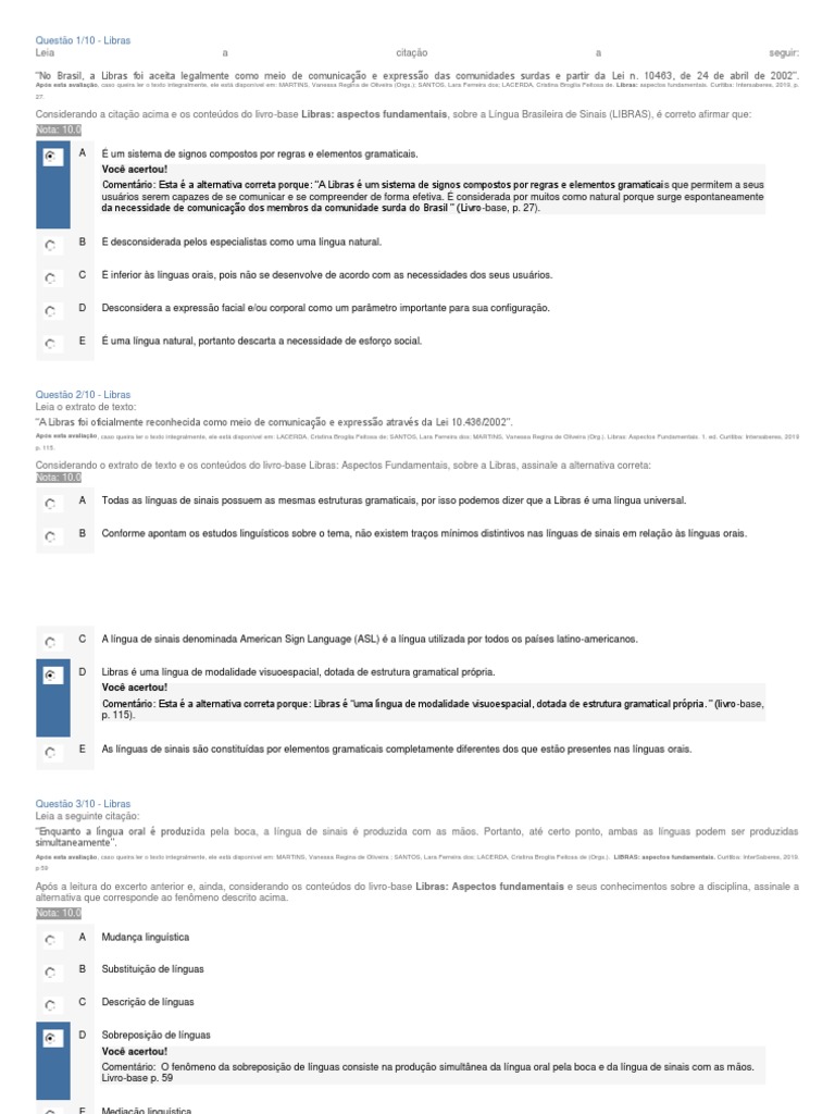 Questão 3/10 - Libras