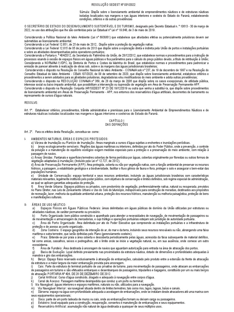 Considerando o disposto na Resolução Conjunta IAP/SEDEST Nº 23 DE 19/12/2019 ou outra que venha a substituí-la, que dispõe sobre procedimentos
