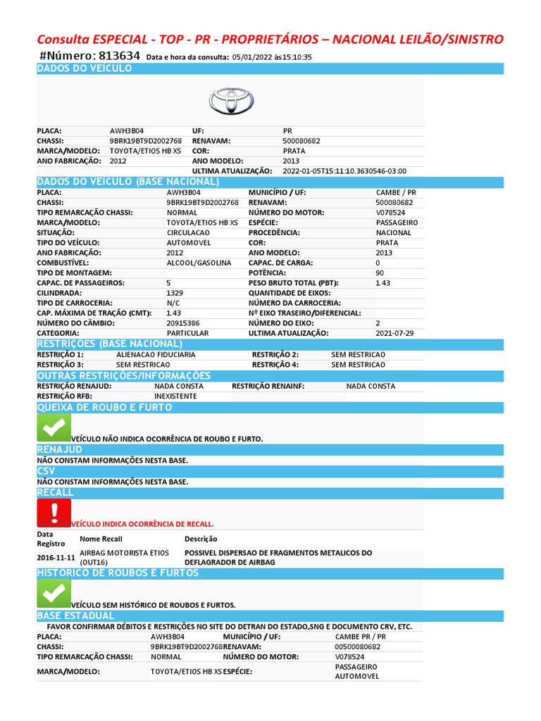 Consulta ESPECIAL - TOP - PR - PROPRIETÁRIOS – NACIONAL LEILÃO/SINISTRO