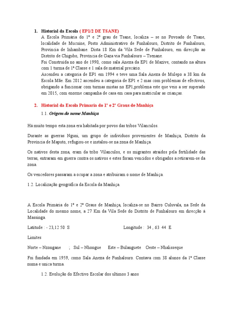 2. Historial da Escola Primaria do 1º e 2º Graus de Manhiça