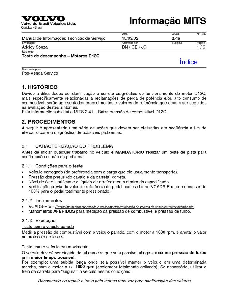 Esta informação substitui o MITS 2.41 – Baixa pressão de combustível D12C.