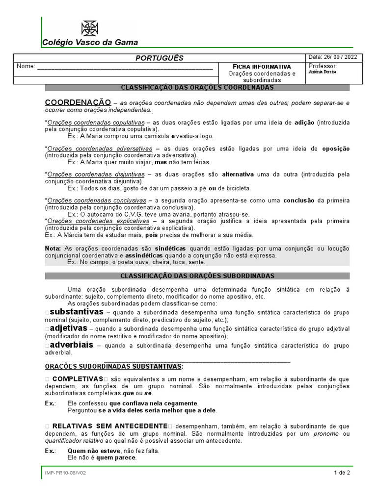 PORTUGUÊS Data: 26/ 09 / 2022