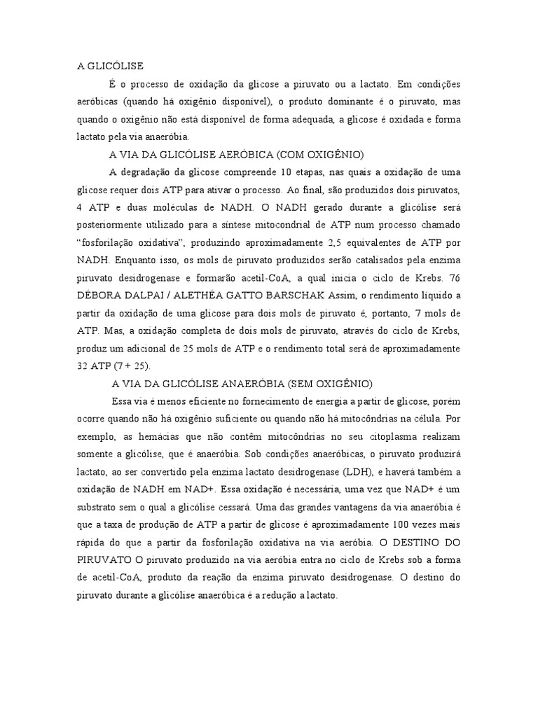 substrato sem o qual a glicólise cessará. Uma das grandes vantagens da via anaeróbia é