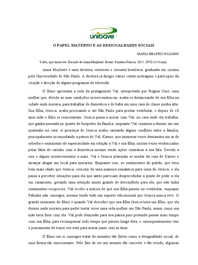 exclusão. É importantíssimo citar a incrível atuação de Regina Casé, que realmente se entrega