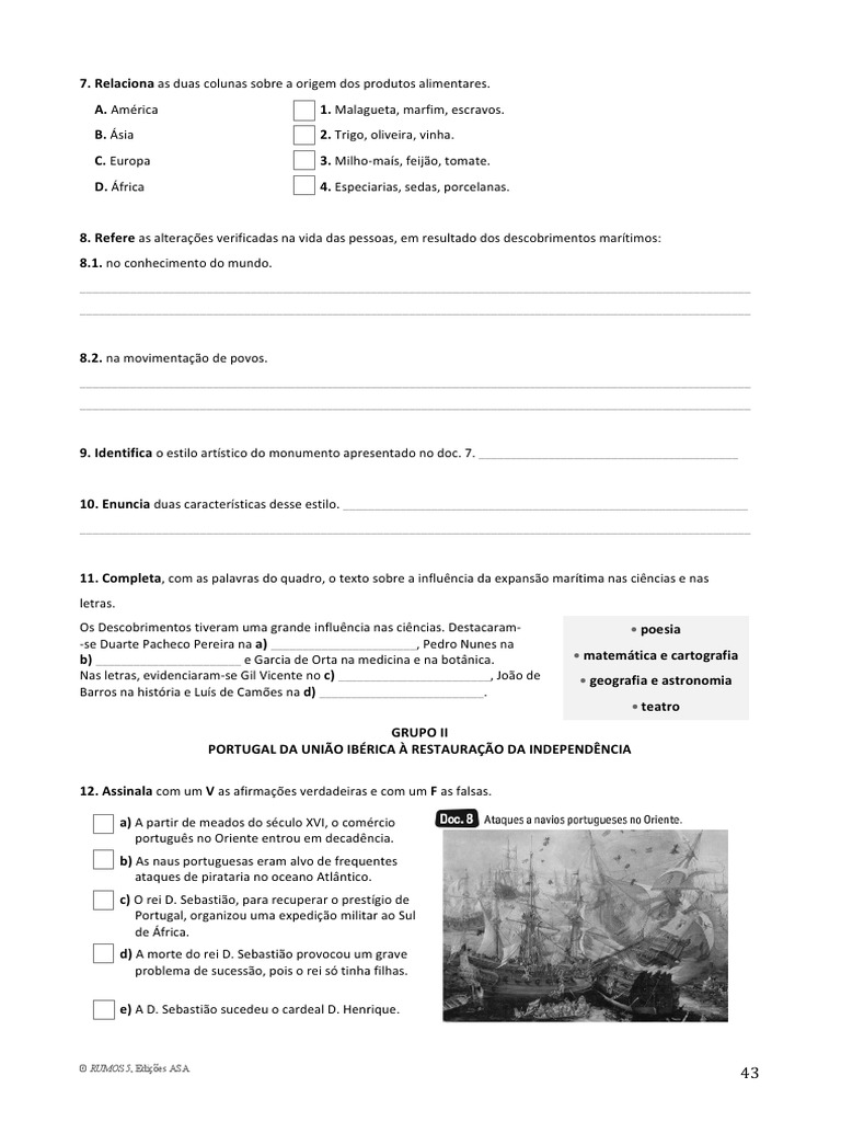 2. a) F; b) V; c) V; d) V; e) F; f) V Norte de África. d) A morte do rei D. Sebastião