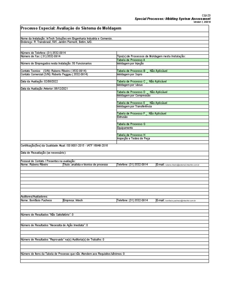 CQI 23.sistema Moldagem Planilhas Injeção