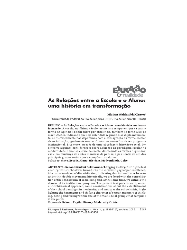 Educação & Realidade, Porto Alegre, v. 40, n. 4, p. 1149-1167, out./dez. 2015. 1149