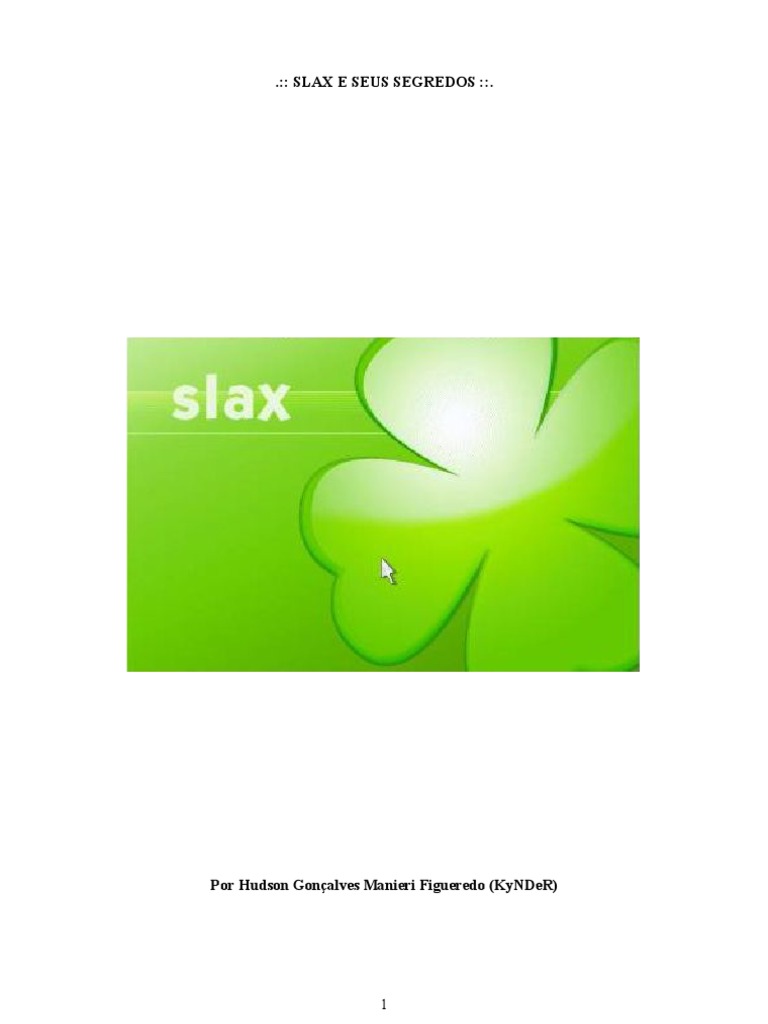 .:: SLAX E SEUS SEGREDOS ::. 1 - INTRODUO SLAX um CD bootvel contendo o sistema operacional Linux, o qual roda diretamente do CDROM sem a necessidade de instalao. O live CD baseado no Slackware Linux que uma das mais antigas distribuies existentes atualmente. O SLAX em particular, muito diferente das outras distribuies ?LIVES?, ele tem uma srie de vantagens e opes, tais como criar um mdulo(pacote de software) e adicionar o mesmo ao CD, carregar esse mdulo de um local no seu HD ou dispositivo removvel, permite que seja instalado pacotes e tem opo para salvar as alteraes feitas durante sua utilizao, tem vrios parmetros de inicializao e por ser baseado no Slackware tem sua inicializao tipo do BSD, o que o torna mais rpido do que os outros para inicializar. 1.1 - Como funciona o LiveCD ? Podemos dividi-lo em trs partes. Primeira, o kernel do Linux(vmlinuz) carregado, initrd.gz descompactado na memria RAM ocupando 4.4 Mb e montado como o sistema de arquivos root. Segunda fase concluda inicializando o script /linuxrc. Isso uma parte dos scripts Linux Live, o qual copiado para dentro do initrd durante a criao do LiveCD. O sistema de arquivo temporrio(tmpfs) montado pelo linuxrc no /mnt e todos os arquivos dos diretrios /base e /modules que esto no CD so inseridos no sistema de arquivo live(ex: base/kde.mo montado no /mnt/kde.mo, base/xwindow.mo montado no /mnt/xwindow.mo, etc). Depois, imagens especificadas pelo load= parmetro de inicializao do kernel so inseridos (a partir do diretrio /optional que est no CD) e finalmente o /mnt trona-se a raiz. (/mnt torna-se /, por exemplo /mnt/bin/bash fica sendo /bin/bash) Na terceira fase, /linuxrc inicia o /sbin/init. De fato o /mnt/sbin/init, mas nesse momento o /mnt j a raiz, assim chamado o /sbin/init (usando o comando de craio exec bash). 2 - A INICIALIZAO (BOOT) Parmetros de inicializao(boot) so usados para mudar o processo de boot do slax. Alguns deles existem em todos os Linux, outros so especficos para o slax. Voc pode us-los para desabilitar a deteco de alguns tipos de hardwares pode tambm por exemplo iniciar o slax a partir do disco rgido(HD), pular a tela de login e iniciar a interface grfica, etc. Reinicie o seu computador e aguarde alguns segundos antes do logotipo do slax aparecer (normalmente menos de 5 segundos). Nesse momento voc ver o "boot: ", logo abaixo do logotipo(no canto inferior da tela). Comece digitando uma das opes seguintes imediatamente. Existe um tempo de espera para inicializao, ou seja, se no digitar nada em 5 segundos, o CD iniciado automaticamente, pressionando F1 voc pode obter ajuda. 2.1 - Habilitando a caracterstica de configurao web(webconfig) do SLAX. (Permite salvar suas modificaes para o site do SLAX) Para habilitar essas caractersticas digite: boot: slax webconfig=passphrase boot: slax webconfig=ask 3