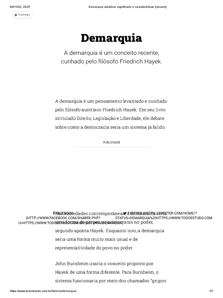 segundo aponta Hayek. Enquanto isso, a demarquia
