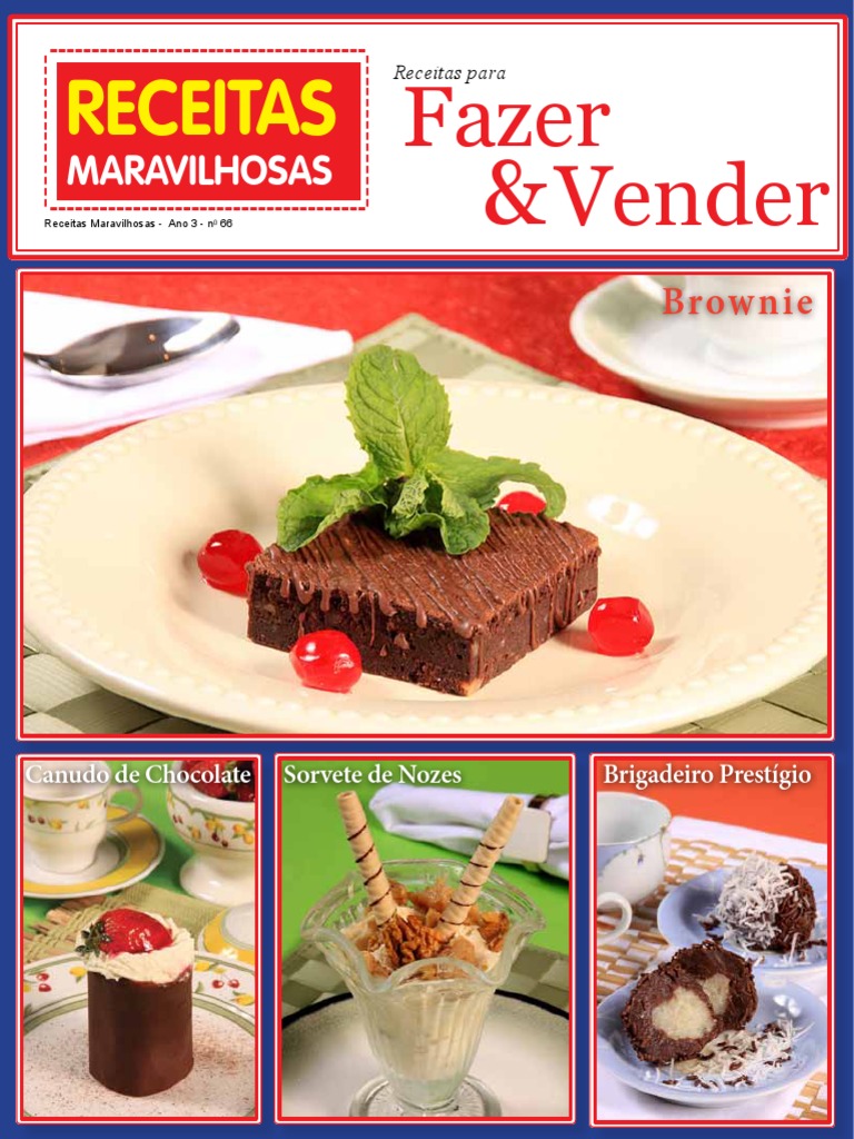 EDITOR Paulo Milreu DIRETORA ADMINISTRATIVA Aliny Milreu DIAGRAMAO Liliane Gomes Guilherme Moreno DEPARTAMENTO COMERCIAL Moacir Oliveira DEPARTAMENTO FINANCEIRO Rafaella Fonseca ASSISTENTE DE COZINHA Felipe Lazaro (11) 7463-3997 REDAO Beatriz Carrasco Fabiana Coletta Giulia Longhi Lucas Martinez FOTOGRAFIA Artur Bragana PRODUO Beatriz Carrasco ATENDIMENTO AO ASSINANTE Ana Carolina Maria dos Anjos T. Milreu Cristiane Medeiros AGRADECIMENTOS Pepper Itaim Tel.: (11) 3073-0333 Suxxar Vila Olmpia Tel.: (11) 3842-3200 No permitida reproduo total ou parcial do contedo dessa edio sem autorizao prvia da editora. Receitas Maravilhosas Receitas para Fazer e Vender - edio 66