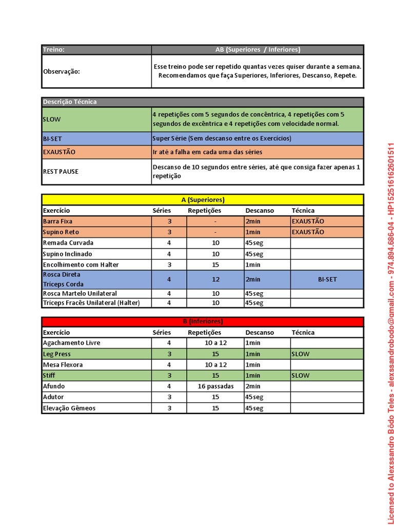 Treino: AB (Superiores / Inferiores)