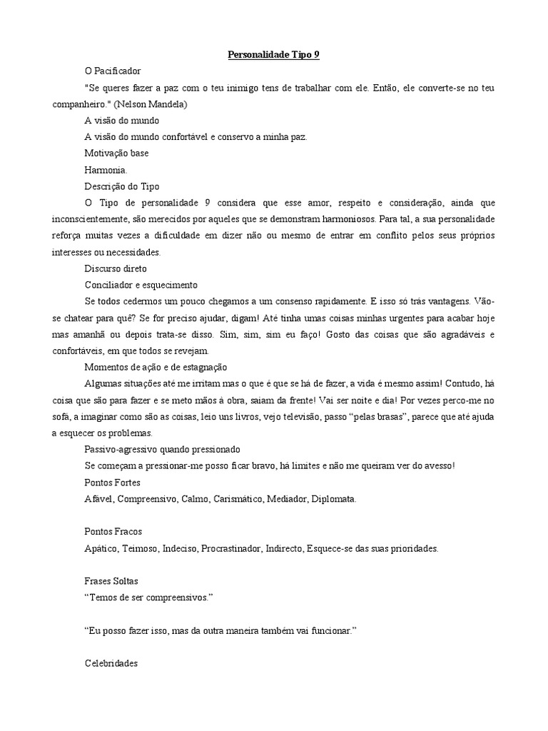 O Tipo de personalidade 9 considera que esse amor, respeito e consideração, ainda que