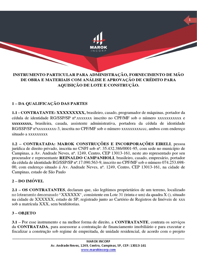 1.2 – CONTRATADA: MAROK CONSTRUÇÕES E INCORPORAÇÕES EIRELI, pessoa