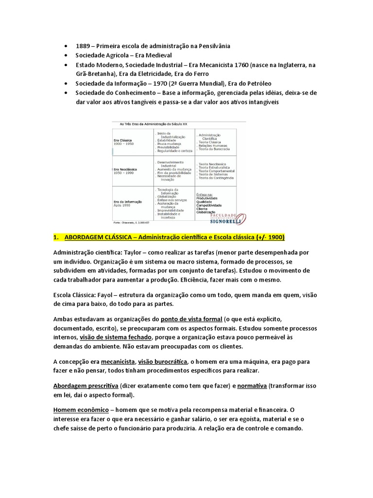 1. ABORDAGEM CLÁSSICA – Administração científica e Escola clássica (+/- 1900)