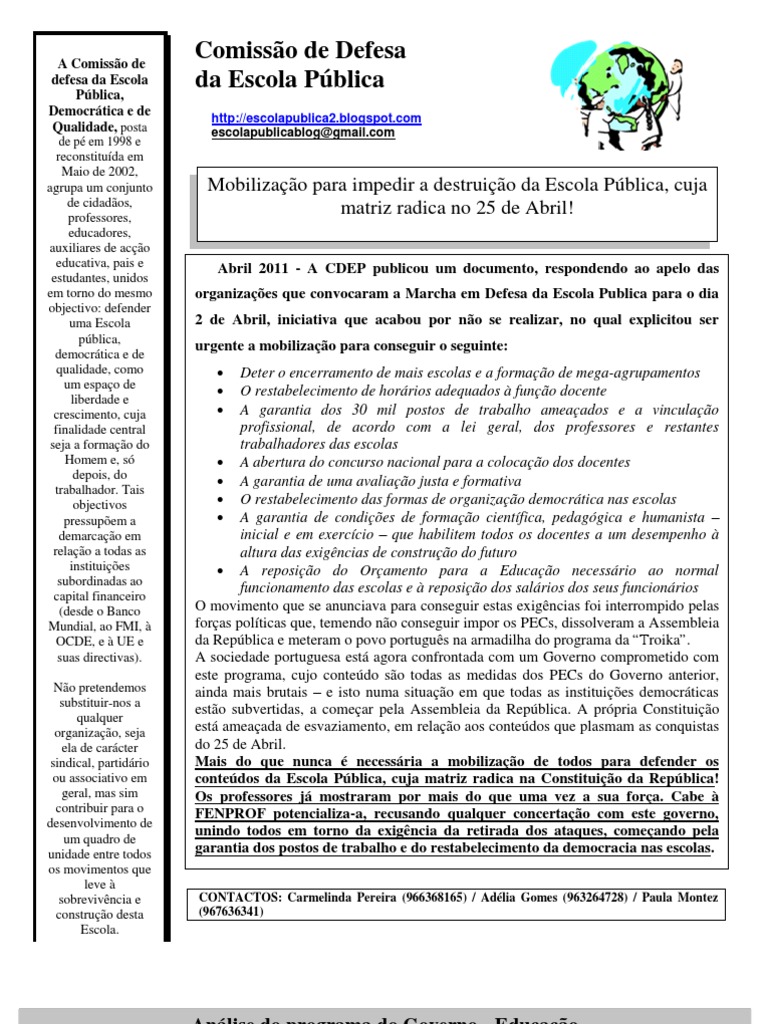 A Comissão de defesa da Escola Pública, Democrática e de Qualidade, posta