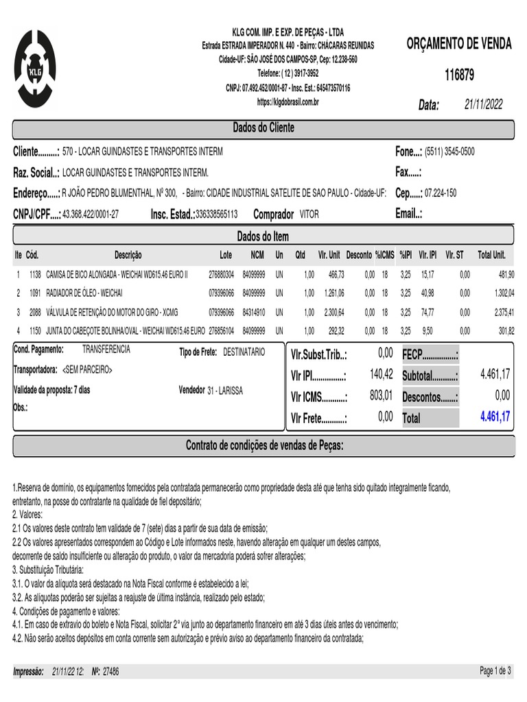 Vlr IPI...............: 140,42 Subtotal...........: 4.461,17