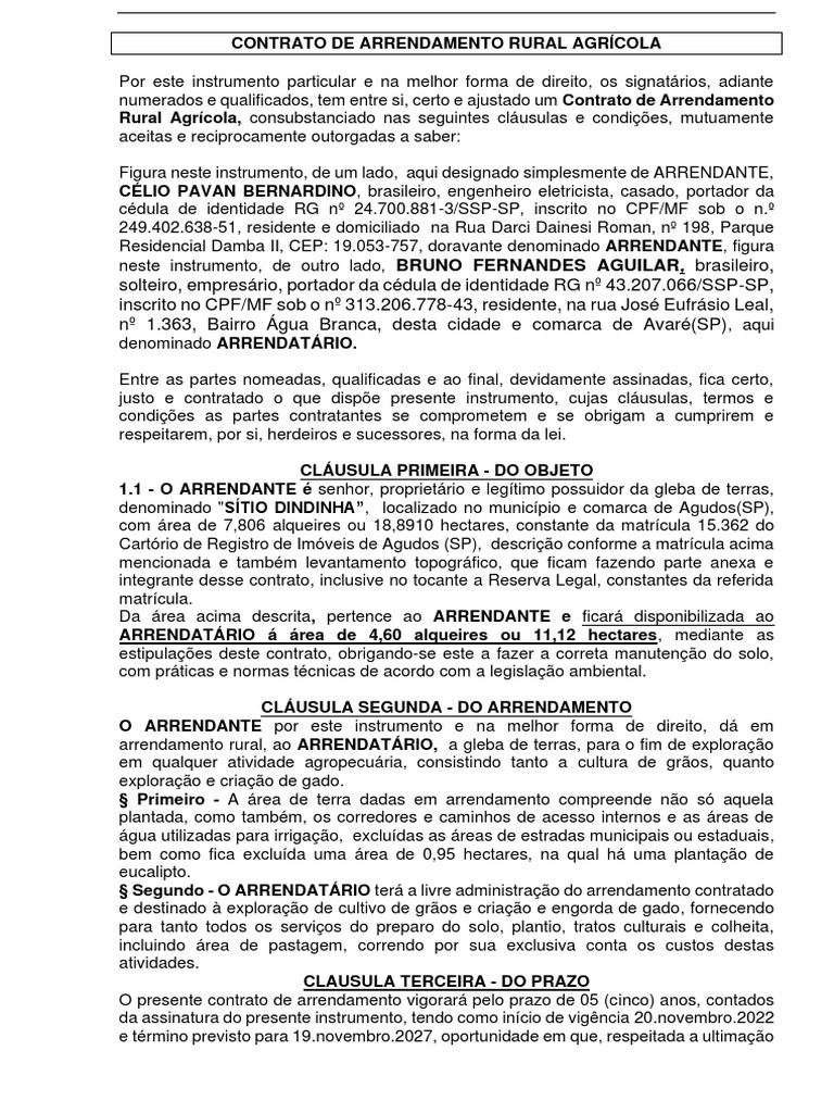 neste instrumento, de outro lado, BRUNO FERNANDES AGUILAR, brasileiro,
