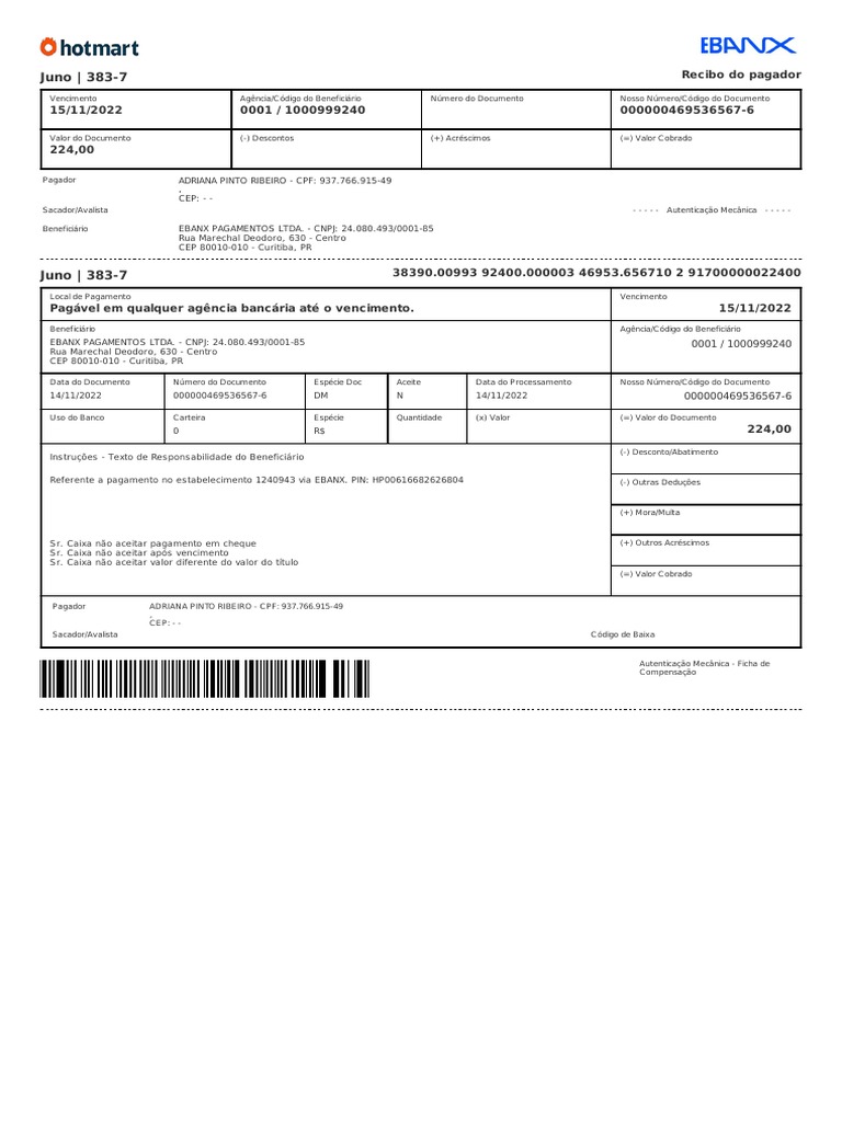 Beneficiário EBANX PAGAMENTOS LTDA. - CNPJ: 24.080.493/0001-85