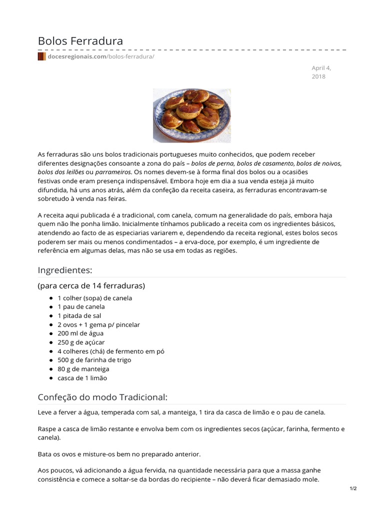 difundida, há uns anos atrás, além da confeção da receita caseira, as ferraduras encontravam-se