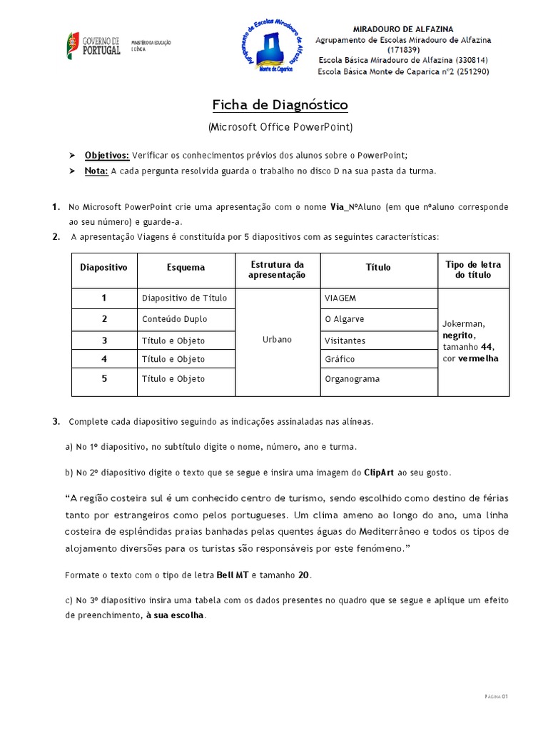 1. No Microsoft PowerPoint crie uma apresentação com o nome Via_NºAluno (em que nºaluno corresponde