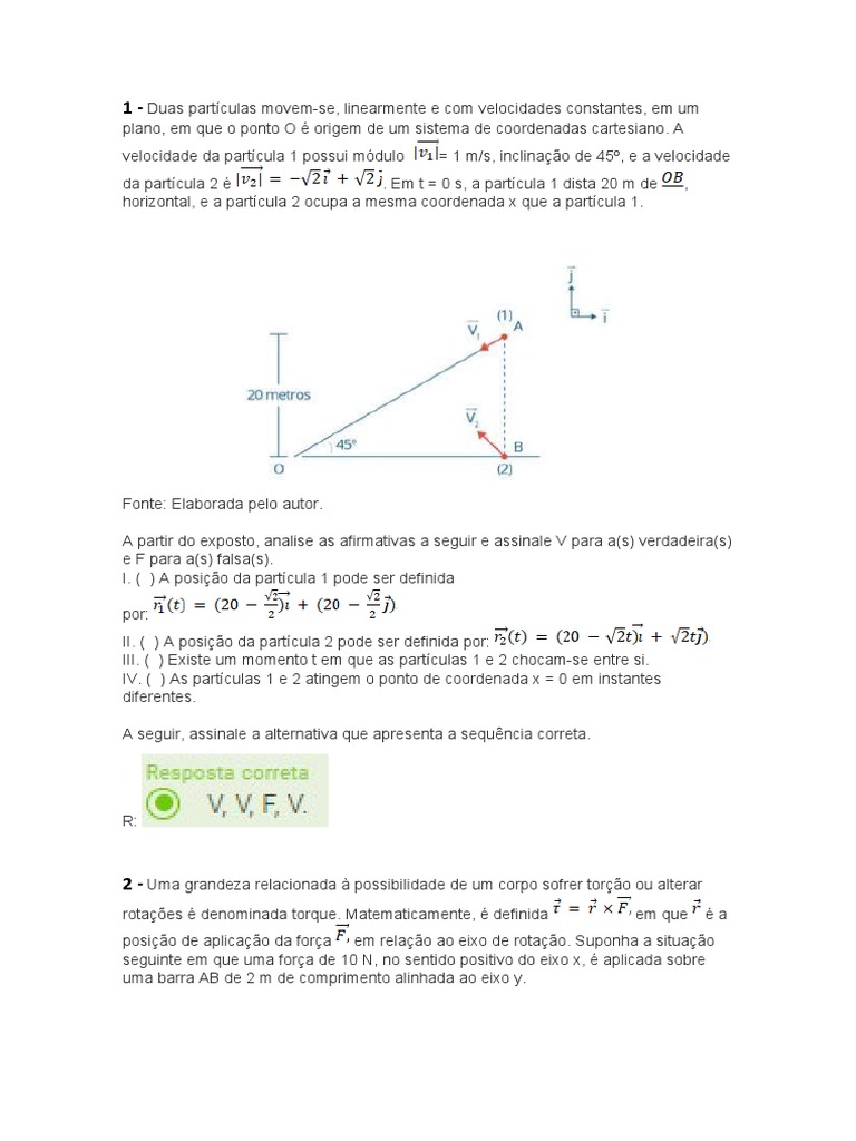 da partícula 2 é . Em t = 0 s, a partícula 1 dista 20 m de ,