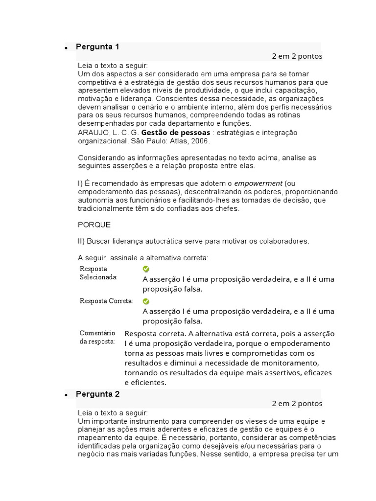 da resposta: I é uma proposição verdadeira, porque o empoderamento