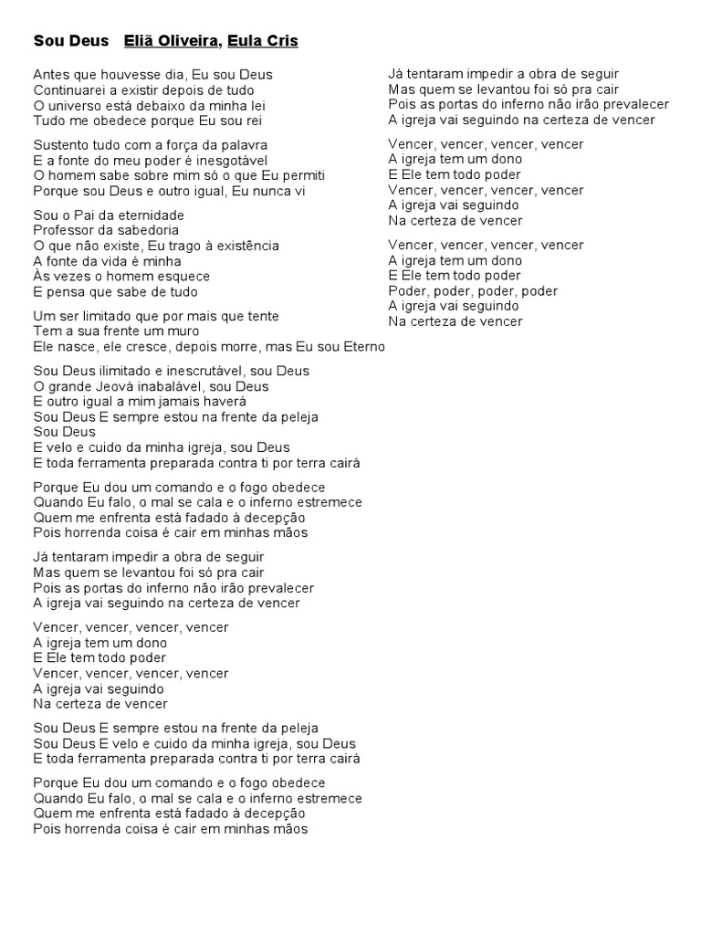 Porque sou Deus e outro igual, Eu nunca vi Vencer, vencer, vencer, vencer