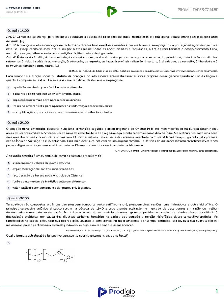 Exercícios ENEM 2009-2018: Questões e Respostas