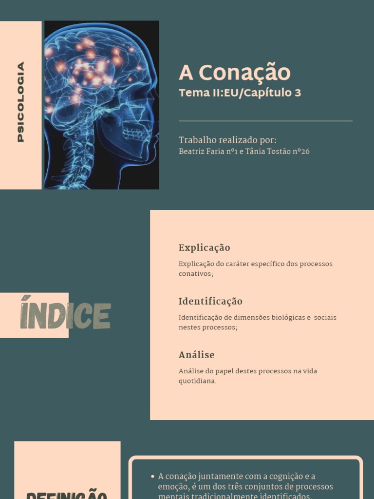 Conação Refere-se à dimensão psíquica proativa