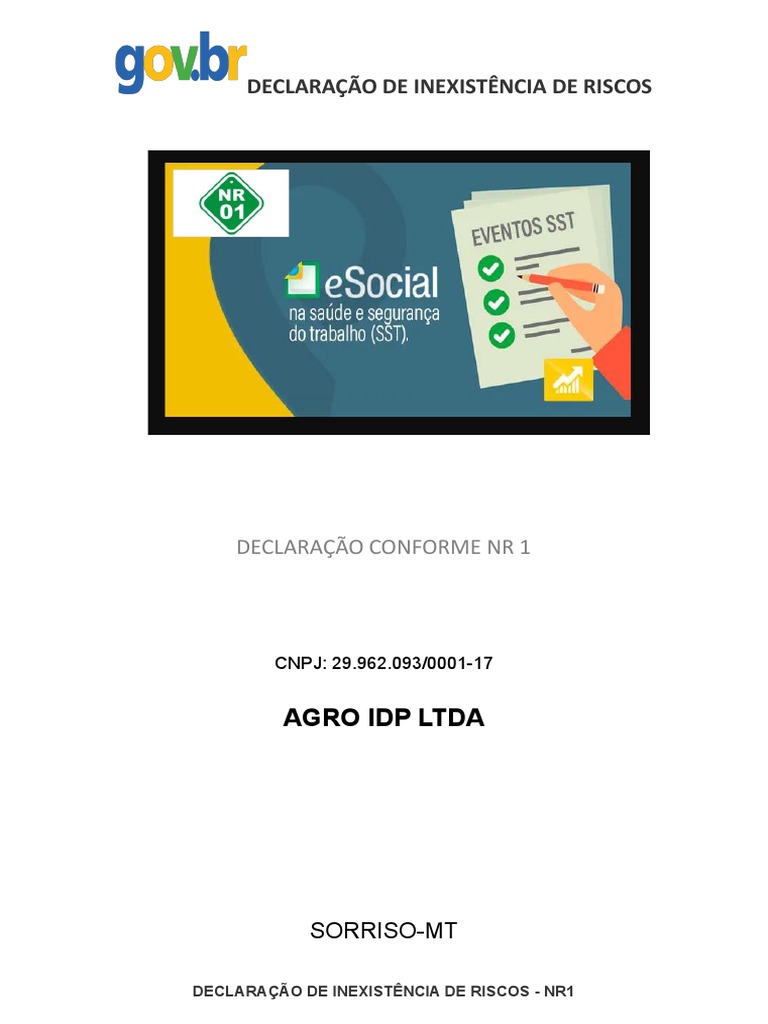 Declaração emitida em 01/08/2022, baseado na NR1 do ministério do trabalho e economia