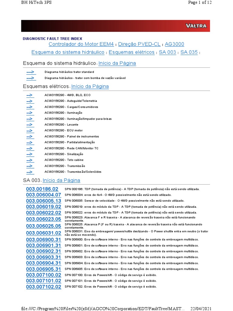 035.0011032.01 SPN 011032: Sensor de tração, esquerdo, B3E - Comportamento anormal do controle do engate.
