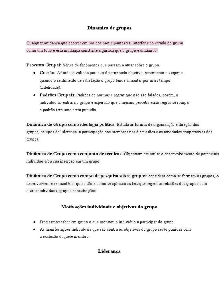 como um todo e esta mudança constante significa que o grupo é dinâmico.