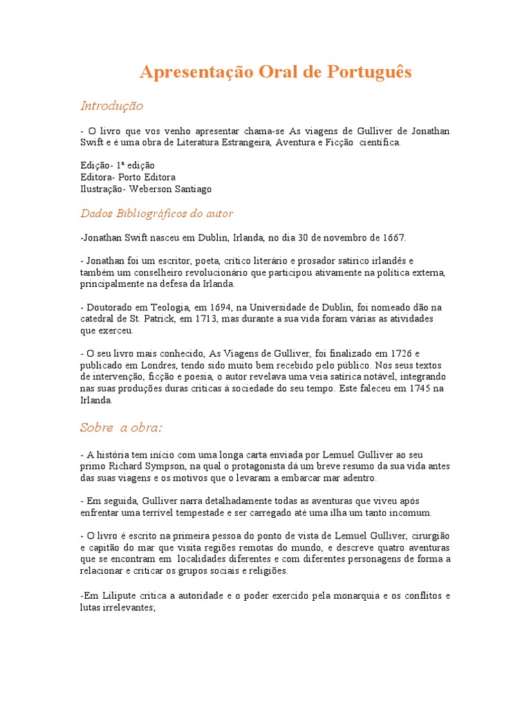 - O livro que vos venho apresentar chama-se As viagens de Gulliver de Jonathan